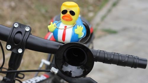 - 𝐔nique 𝐃esigns: Enhance your ride with our stylish bicycle horn, perfect for boys bike bell, and kids bike horn. Features a unique presidential duck design with sunglasses necklace for a cool, fun style.