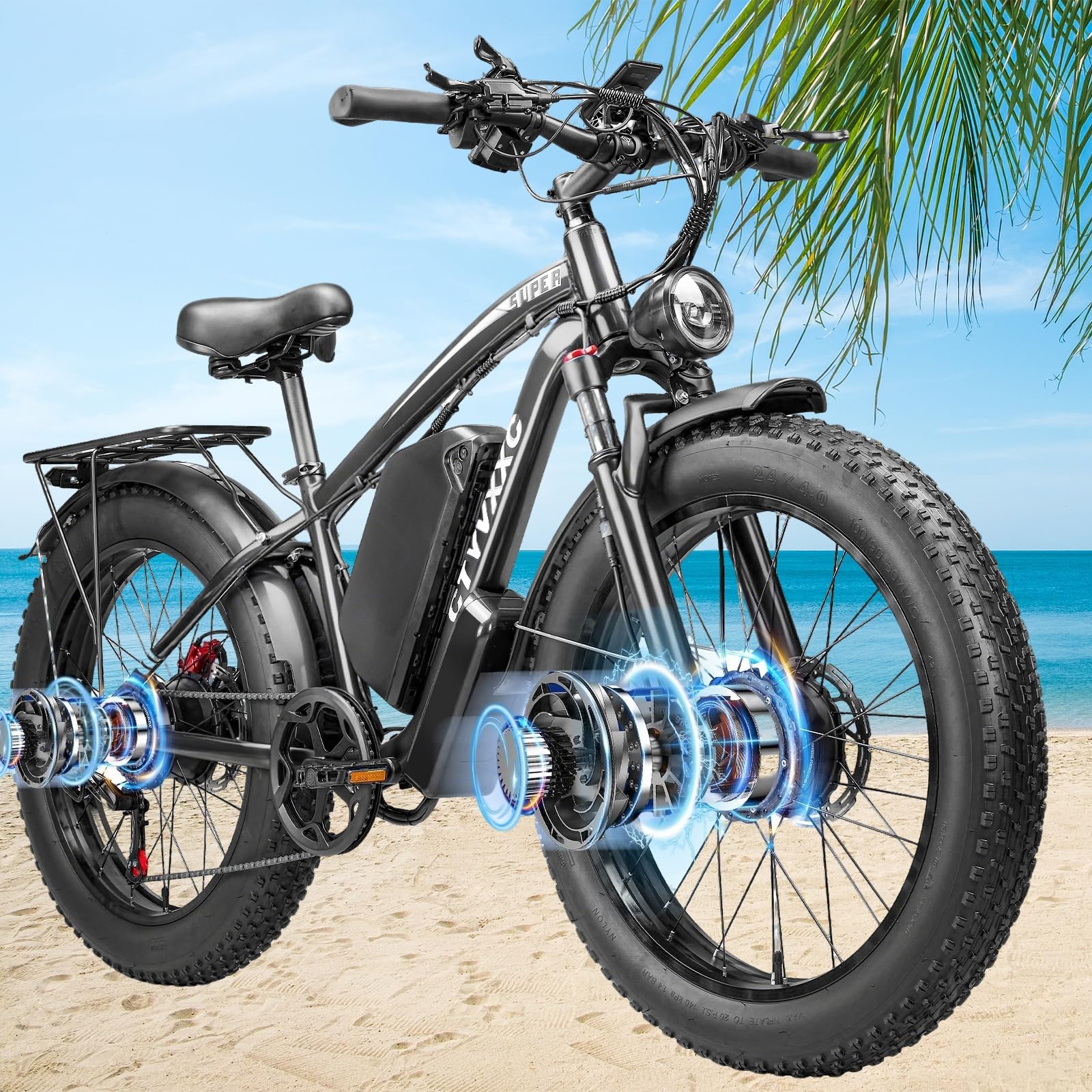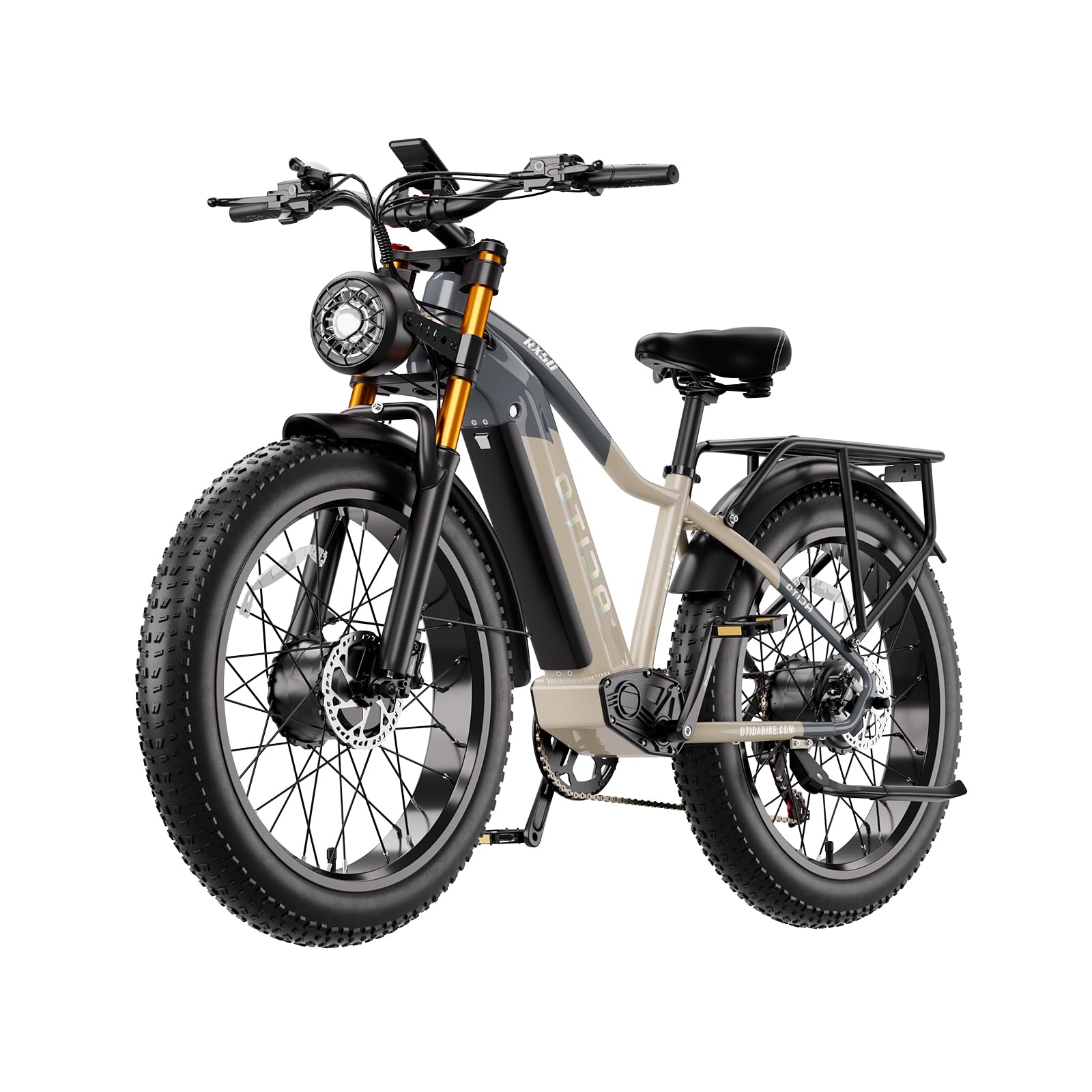 - All-Terrain Stability & Safety Features: The e bike can conquer diverse terrain with 26" x 2.1" anti-puncture tires and dual front suspension that absorbs bumps for a smoother ride. Bright LED headlight and taillight ensure visibility during night rides, while powerful disc brakes provide reliable stopping power in all weather conditions.
