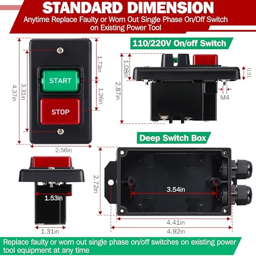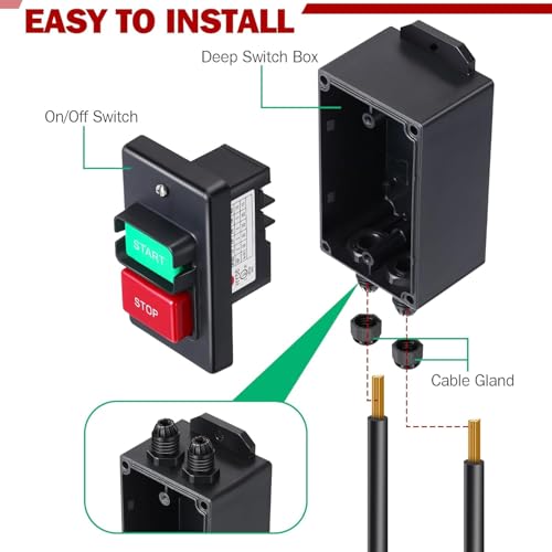 - [Efficient Power Control]: Effortlessly control power supply with our 110/220V Single Phase On/Off switch, Provides you with a master or emergency power off safety switch box designed to safeguard your woodworking machines, the start button can be locked to prevent unauthorized use, makes switching on/off has been even simpler