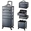 - Sturdy Rolling Train Case: Adazzo 4-in-1 rolling makeup train case PRO classic black, a signature style of understated elegance, will not be out of date in any year. It is suitable for makeup artists from beginners to professional. ABS aluminum and metal reinforced corners have good wear resistance and are lightweight and durable. Aluminum tie rods provide smooth operation and corrosion resistance.