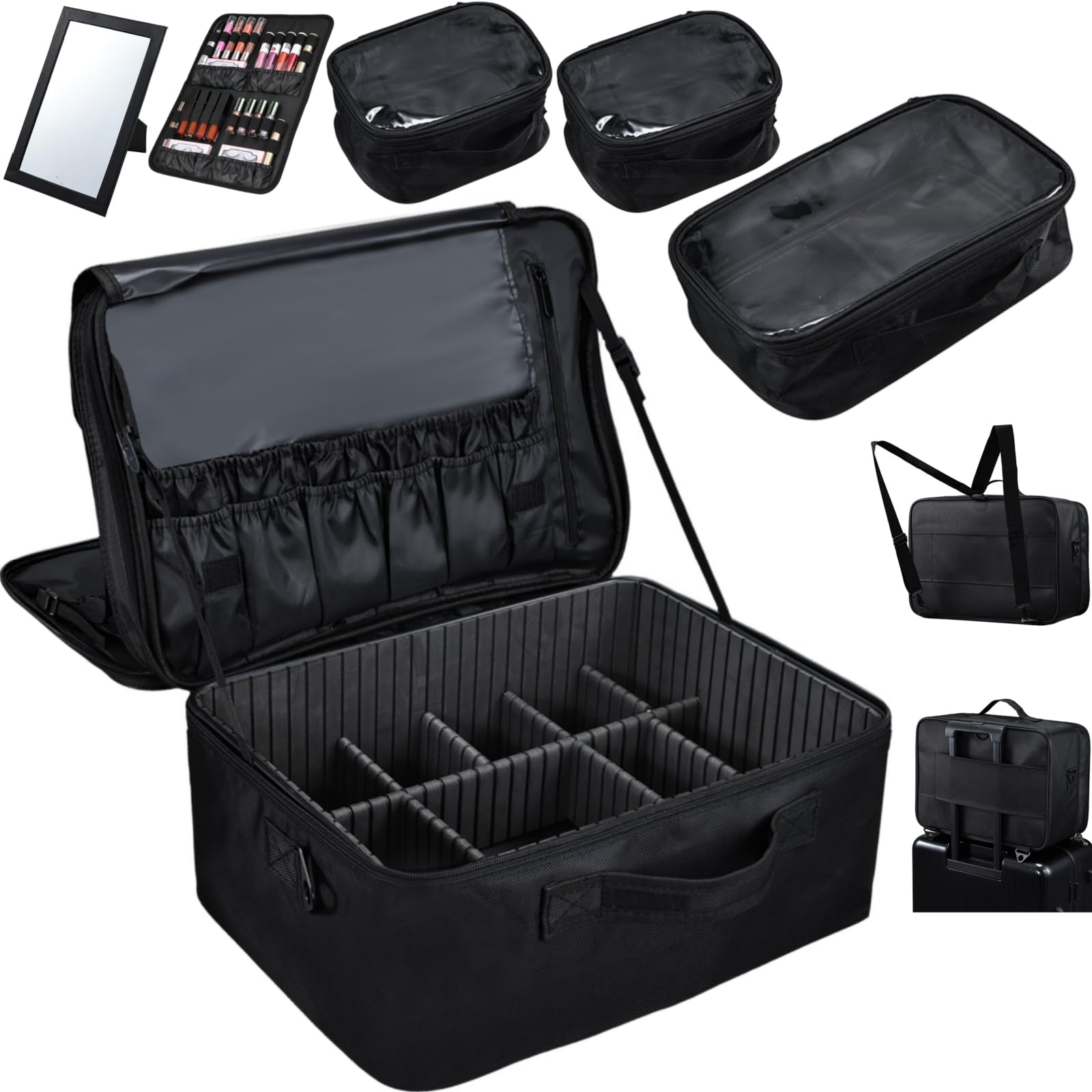 - ♦Removable Middle Tray: The middle tray is ingeniously matched with the detachable baffle. According to gadgets of different sizes, space can be arranged, not only the items are placed neatly, but also can be fixed to prevent shaking and falling damage. It is very suitable for makeup artists, manicurists, hairstylists, beauticians, nail tech students, tattoo artists or people who have a lot of cosmetics.