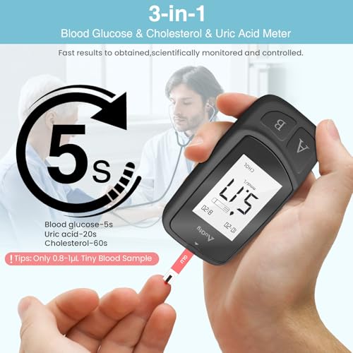 - [ 3 in 1 Multi-Function Monitor System] 3 in 1 Multi-Function Meter. Tests multiple parameters with reliable test results, Including Cho/ Glu/ UA.