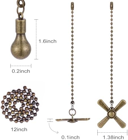 Ceiling Fan Pull Chain Ornaments, 13.6 Inches Fan Pulls Extension Chains Set, Decorative Metal Light Bulb and Fan Cord, Ultra Long 3mm Diameter Beaded Ball Pull Chains for Lamp