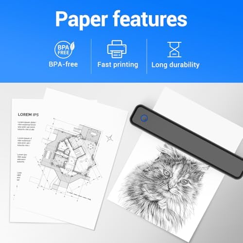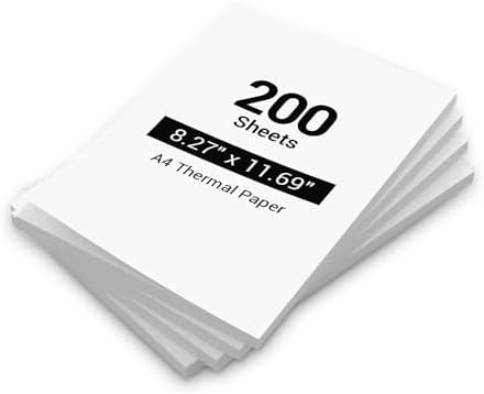 200 pages, BPS free, thermal printer paper 8.5 x 11, letter, folded, continuous, perforated, quick dry for pen, BPA free. For IOOIOO, Peripage, Munbyn, Jadens, Hprt, Phomemo (lasting 3 years)