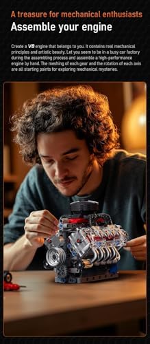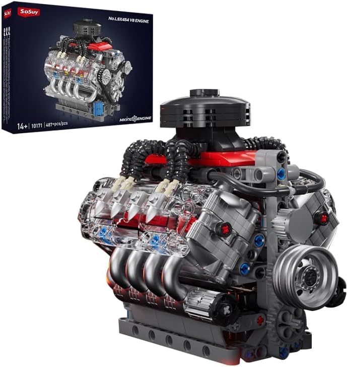 Sosuy V8 Engine Building-Blocks Sets, Working Motor Model, 487+PCS Mechanic Display Home Set for Collection Fans, STEM Cars Toys for Boys, Birthday Gitf for 8+ Kids Adults Men Girls