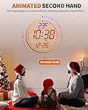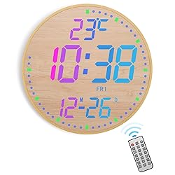 - 【Convert 12 Colors Freely】12" High definition LED large screen display, the digital wall clock can change 12 colors of large digits with remote control. You can read it clearly, even in the distance or corner. ATTENTION: Must be connected to a power source to work. Not battery operated. 【Design with Minimalist Bamboo Elements】This elegant digital wall clock is simple and tasteful, creating a calm and natural ambiance, making it a perfect fit for both homes and offices. Combining aesthetics with functionality, this beautiful and practical clock is perfect for decorating living rooms, bedrooms, kitchens, or offices—enhancing the charm of any newly decorated space. 【3-Level Auto-Brightness】Preset an ambient light sensor to automatically change its displaying brightness, make it comfortable for human eyes at any time. 【Memory Function】There is a built-in memory function, even if the power is disconnected, the time data will not be lost, no need to reset. And this large wall clock has a count-up or count-down function (up to 99 minutes and 99 seconds). 【Multi-Functional with Remote Control】Features 3 modes—count up/down timer, alarm clock, and regular clock. Easily switch modes with the mode button. Displays indoor temperature in ℃ or ℉, catering to various needs 【Animated Second Hand】The outer ring doubles as a second hand, creating a dynamic visual effect as it glides with the current time—adding a refined touch to your space.