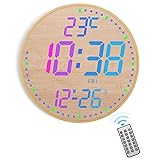 GLOKUUCA 12" Large Digital Wall Mount Clock, Count Down Timer, Alarm, Big LED, 12 RGB Color, Temperature for Living Room Classroom Desk (Bamboo Elements)