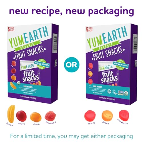 YumEarth Organic Assorted Flavor Fruit Snacks - Allergy Friendly (Top 9 Free), No Artificial Dyes or Flavors, Non GMO, Gluten Free, Vegan Candy Snacks - 0.7 Ounce (Pack of 5) (3.5 Ounce Box (Pack of 5), Fruit)