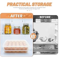 Large Capacity Egg Tray: Each egg tray comes in a set of 2, designed to hold a total of 48 eggs. With dimensions of 12.4 x 9.2 x 2.2 inches, this egg holder features 24 troughs per tray, making it perfect for family gatherings or parties. Reliable & Durable Material: Made from sturdy transparent PP plastic, our stackable egg tray is both reusable and built to last. Can't be microwave,It's hand wash only.The clear design allows you to easily monitor your egg supply, ensuring you never run out. Practical Storage Solutions: This egg storage holder is designed to be space-efficient; stackable with a secure lid to keep your eggs fresh and your refrigerator organized. It’s the ideal solution for maintaining cleanliness and order in your kitchen. Specialized Egg Groove Design: Our egg tray includes a unique groove that evenly distributes weight, providing a stable environment for your eggs. This feature ensures that your eggs remain intact, even when transporting them outside for picnics or events. Versatile Use for Any Occasion: Beyond egg storage, this multifunctional plastic egg holder is suitable for refrigerators, cabinets, and can double as a deviled egg container for various occasions like Easter or Thanksgiving, ensuring your delicious creations stay fresh and secure.