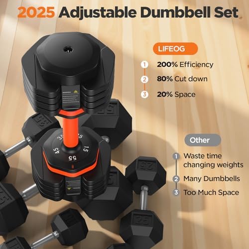 - 5-in-1 Adjustable Dumbbell Set – Each one combines 15LB, 25LB, 35LB, 45LB & 55LB weights in one compact design for versatile strength training