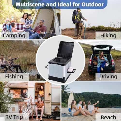 - Multi-Functionality:The camp toilet is more convenient to use with 4-in-1 function. With the two handles, large capacity, wider surface and stronger stability design of the portable toilet for adults, it can be used as an emergency toilet, storage box, fishing stool and car trash can in your daily life