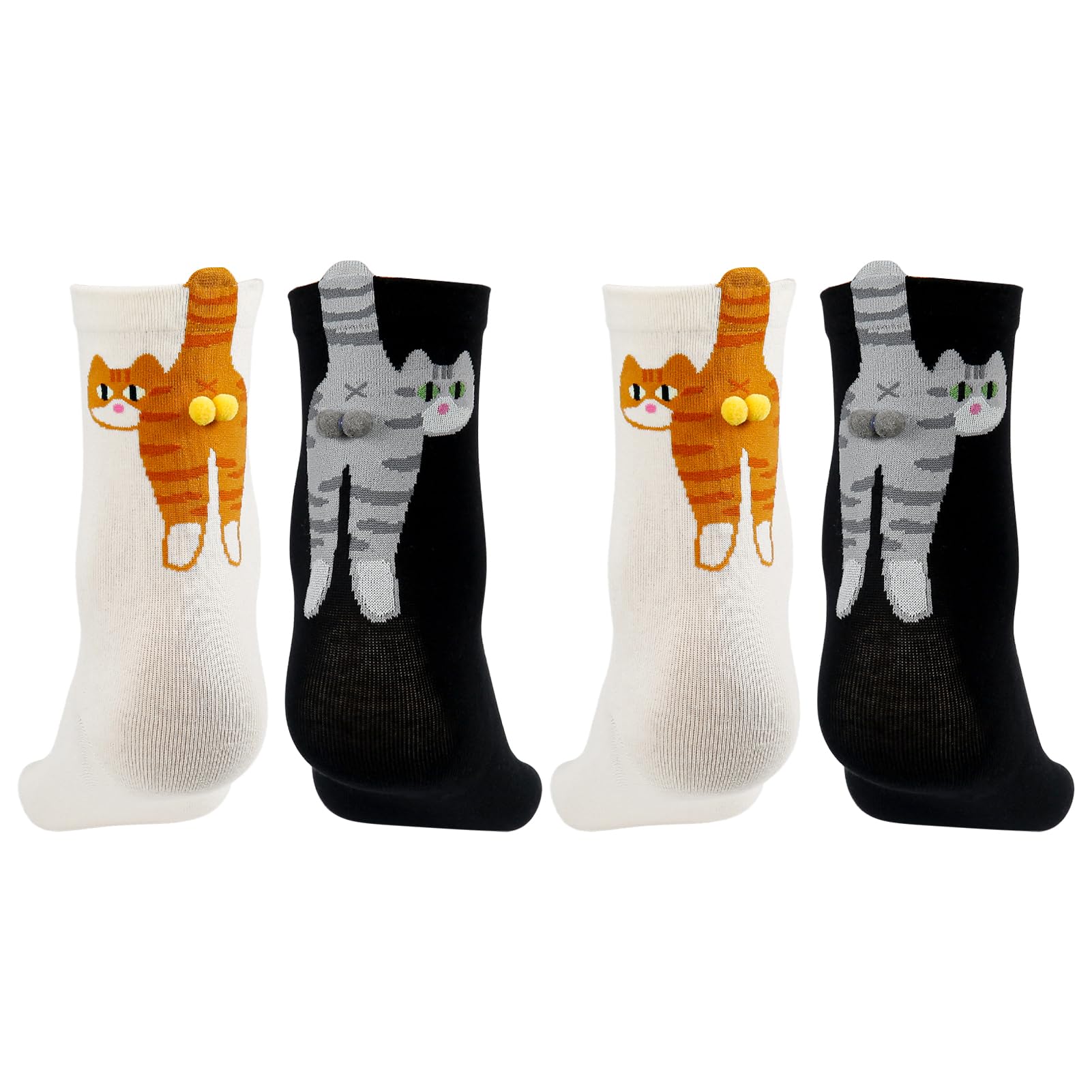 2 Pairs Cute Cat Socks with Balls, Women's Cat Socks, 3D Novelty Cotton Funny Animal Crew Sock for Women Cats Lovers Gift
