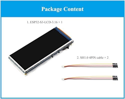 - Onboard 3.16inch LCD display which can smoothly run GUI programs such as LVGL. 320x 820 resolution, 64K color, RGB565 communication interface. 550 cd/㎡ Brightness.
