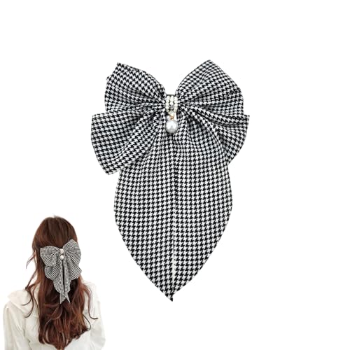 - Fashion Design of Black Plaid Hair Clip Bow: This black and white hair clip bowknot for girls women designed with a long tail and also feature checkered pattern design, which is very fashionable, wearing this pearl bow hair accessories for women girls can make you elegant and eye-catching, perfect as womens summer accessories for women girls