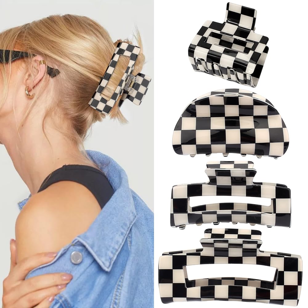 - Big Black White Bow Hair Clip Barrette Size: The size of the large bowknot hair clip barrette for girls women is about 10.23*3.15in,can ensuring that your hair remains perfectly styled throughout, the pearl bow hair clips for women is large enough, non-slip, as long curly hair accessories for women girls, black and white checkered hair accessories for women girls