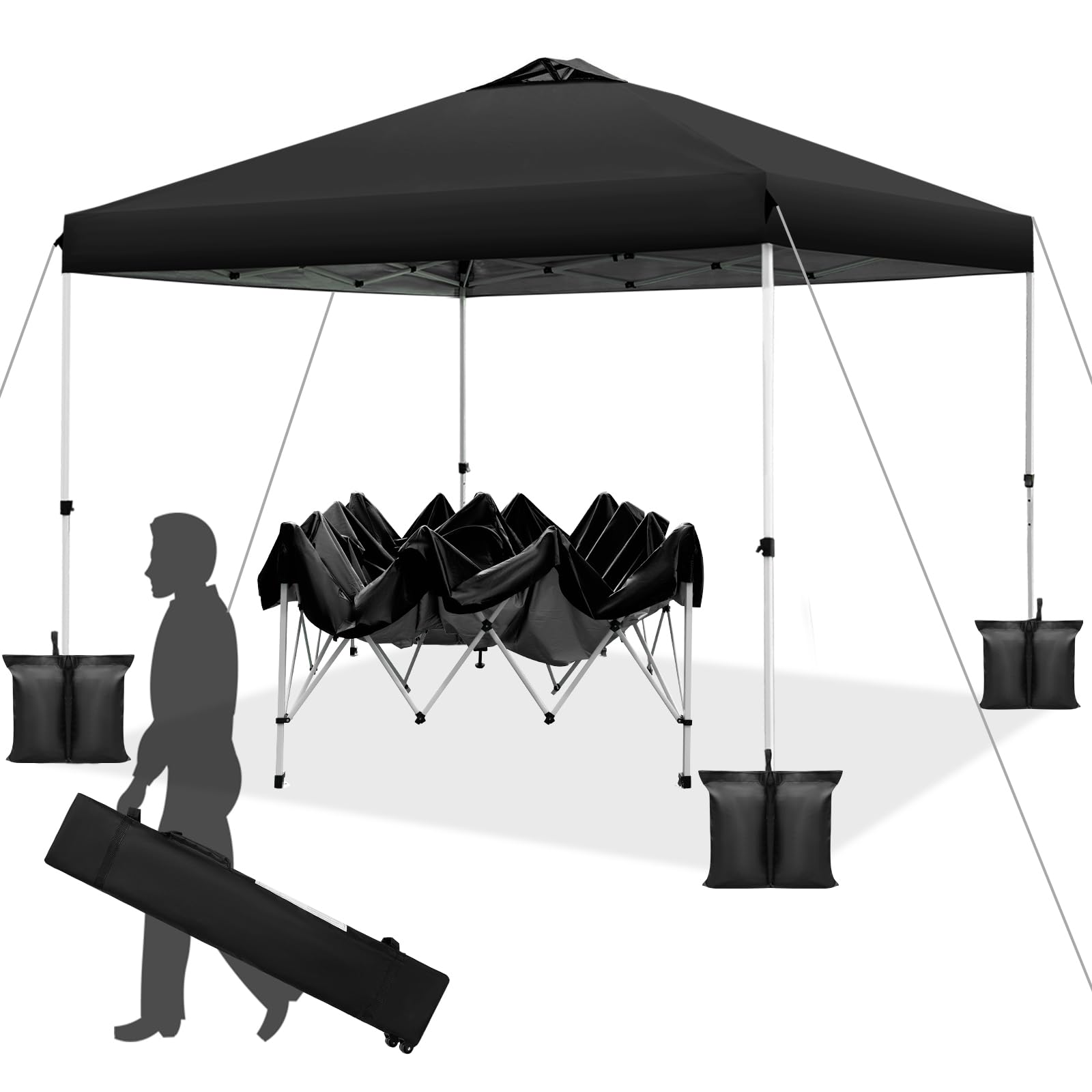 - O𝗻𝗲-B𝘂𝘁𝘁𝗼𝗻 P𝘂𝘀𝗵 S𝗲𝘁𝘂𝗽: The 10x10 pop up canopy features an innovative one-touch central locking system that simplifies the assembly process to less than a minute. Simply press the central locking mechanism and the entire structure snaps securely into place without the need for any tools.The installation can be completed quickly by 1-2 people, making it ideal for outdoor scenes