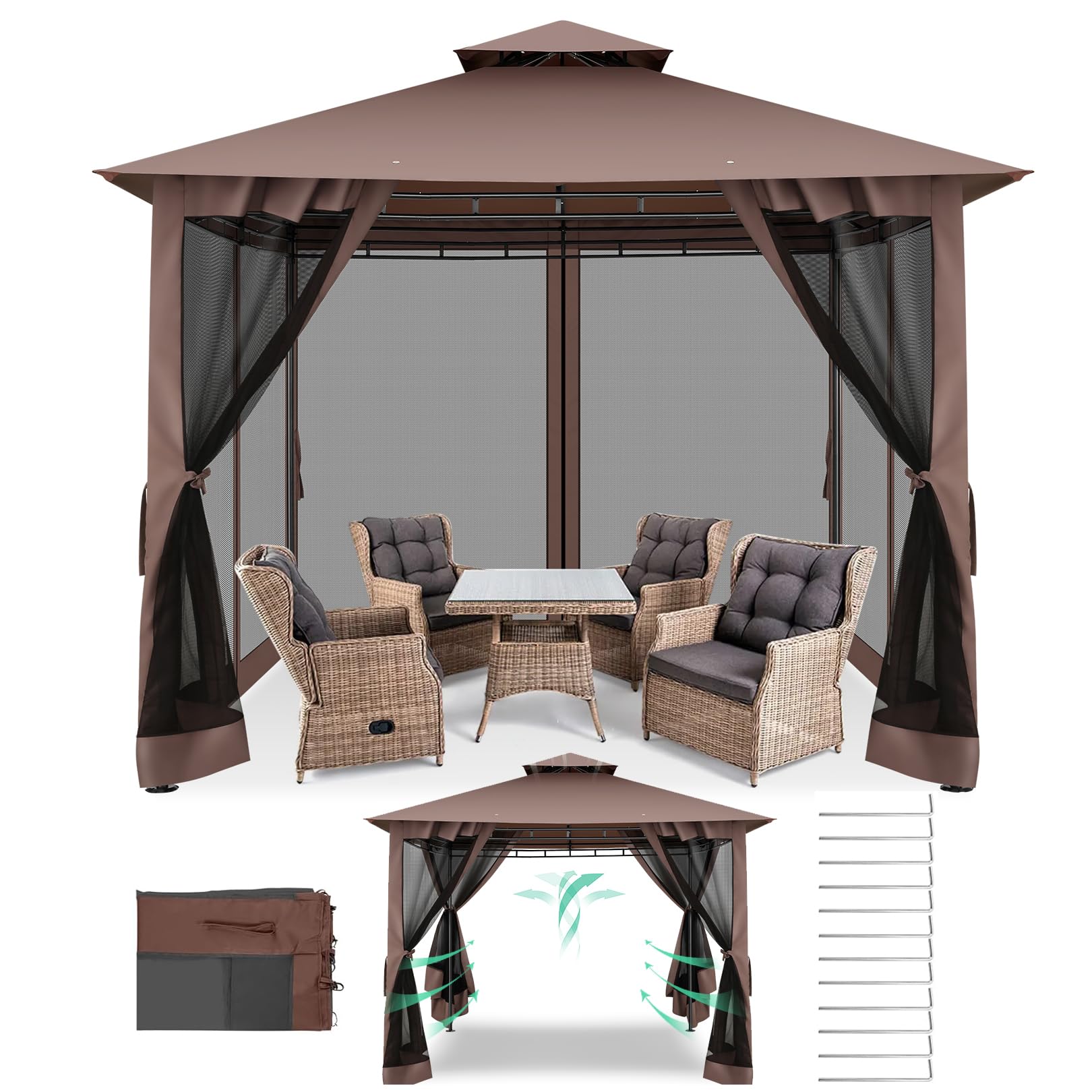 - V𝗲𝗻𝘁𝗶𝗹a𝘁𝗶𝗼𝗻 a𝗻𝗱 UV P𝗿𝗼𝘁𝗲𝗰𝘁𝗶𝗼𝗻: The pop up tent canopy’s integrated ventilation vents enhance airflow, reducing wind resistance and preventing overheating. The pop up gazebo is crafted with 150D silver-plated fabric that provides UPF 50+ protection, blocking 90% of harmful UV rays while providing 85-88% shade for reliable sun safety