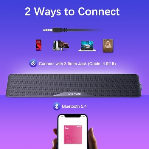 - 【Top-level Rich Sound】Equipped with dual soft-dome silk tweeters, full-range drivers, and mica fiber diaphragms, these computer sound bar produce crisp highs, clear mids, and deep bass. Nylavee computer soundbar’s unique cavity design enhance overall loudness.
