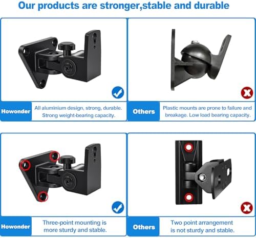 - Enjoy optimal audio quality anywhere in the room with the Howonder Universal Speaker Wall Mount.