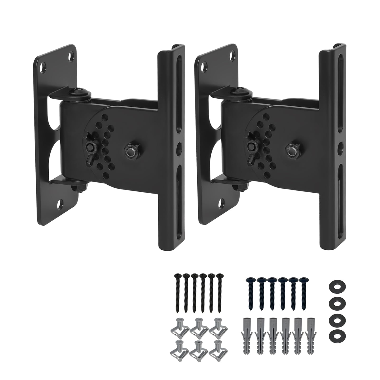 - The wall speaker mount can be adjusted vertically by 90°and horizontally by 180°rotation.Easy adjustment of speakers for perfect listening angle.Perfect for indoor or outdoor use.30 years service life.