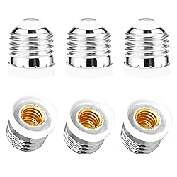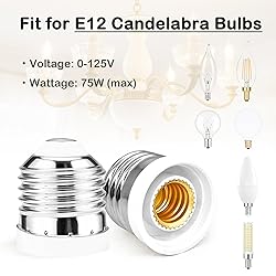 - Product Name: E26/E27 to E12 Light Bulb Socket Adapter Quantity: 6pcs Voltage: 0-125V Power: 75W (Max) Material: Polycarbonate Thermoplastic (PBT), Copper Core, Aluminum Alloy Contact Pin Material: Copper Certification: CE Compatible Fixtures: Ceiling Fan Lights, Chandeliers, Pendant Lights, Wall Sconces, etc.