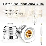 1. Problem Solved: If you own a light fixture with a standard E26 medium base but wish to use more versatile E12 bulbs, this E26 to E12 adapter is the solution! Simply screw it on to convert the base. 2. Copper-core Conductivity: The inner ring and contact points feature copper-core conductivity, providing a broader contact surface. This design ensures greater safety, stability, and efficiency compared to other plastic-metal inner rings. 3. Specifications: These E26 to E12 socket adapters support a voltage range of 0-125V and accommodate bulbs up to 75W. Compatible with all E12 candelabra base bulbs. Note: Installing this adapter adds approximately 0.5" -1" in length. 4. PBT Flame-retardant Material: The plastic components of thses E26 to E12 adapters are crafted from premium thermoplastic polyester (PBT). The metal housing is made of aluminum alloy, withstanding temperatures up to 392℉ (200℃). It offers corrosion resistance and flame-retardant properties for enhanced safety. 5. Versatile Compatibility: Our E26 to E12 adapters are widely applicable for fan lights, chandeliers, pendant lights, and wall sconces equipped with E26 standard bases. With it, you can use any E12 bulb you want, adding more ambiance to your space!