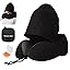 Travel Neck Pillow with 100% Light-Blocking Hood – Ergonomic Memory Foam Support Pillow for Airplane, Long Flights, Road Trips, Office and Car, Full Head and Neck Support with Skin-Friendly Cover
