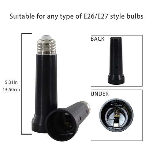Socket Extender, E26 to E27 Light Bulb Socket Extender Standard Medium Base, 5.31 inch Light Bulb Extension Socket Adapter, Lamp Holder Adapter Light Bulb Screw in Celing Light Socket Fan