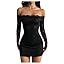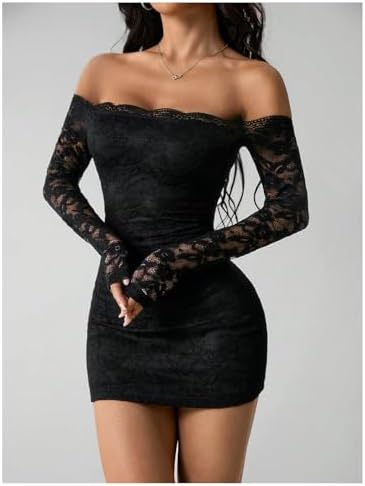 GORGLITTER Women's Lace Long Sleeves Mini Dress Y2K Fall Sexy Off The Shoulder Bodycon Night Out Birthday Party Dresses