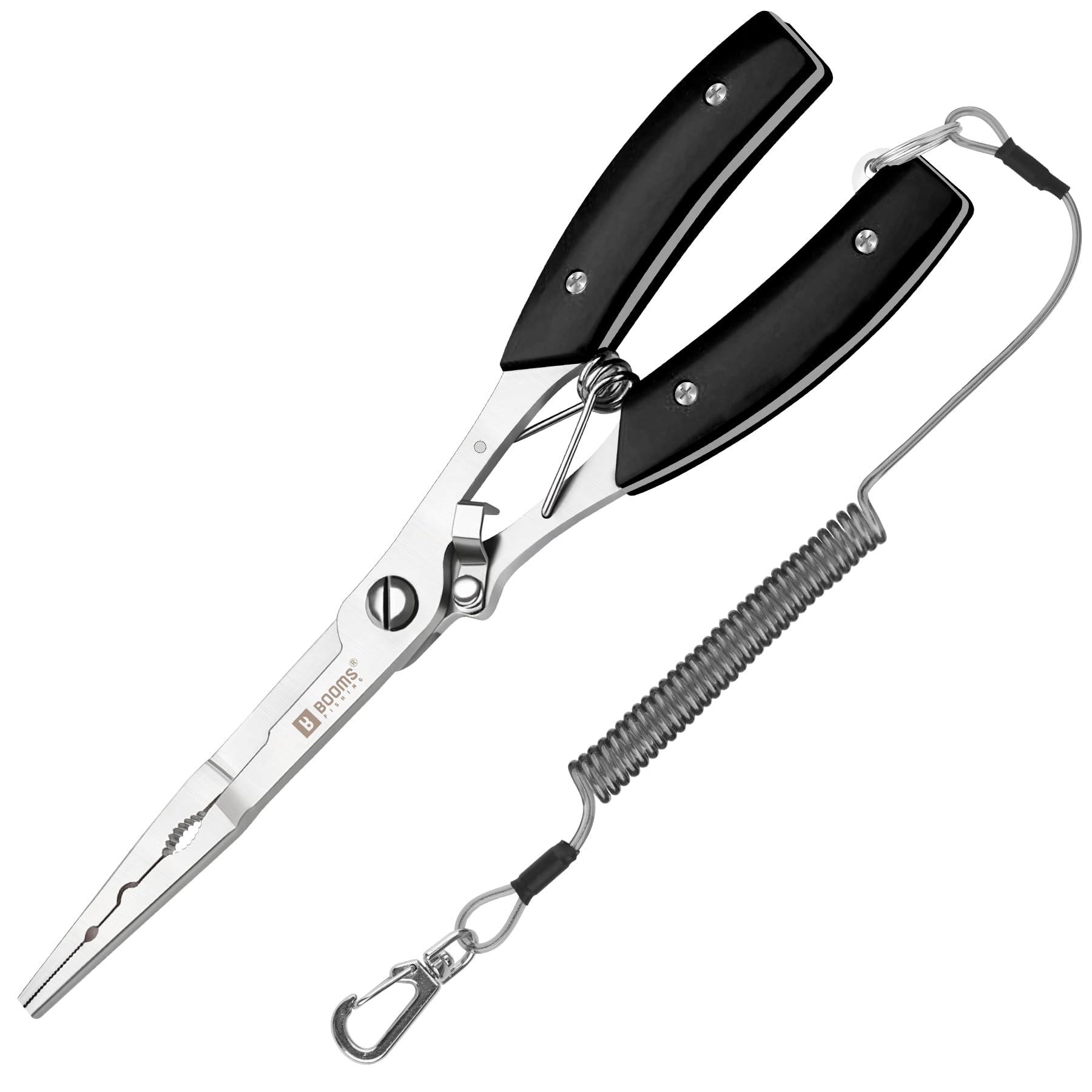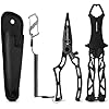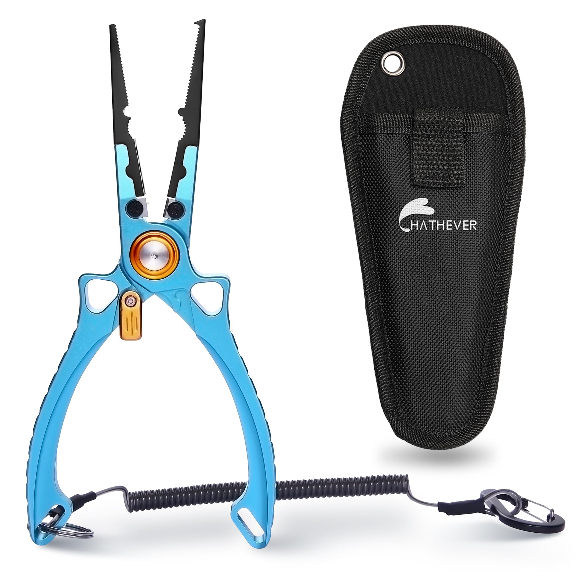 - Ultimate Multi-Function Fishing Pliers: Your All-in-One Fishing Solution (Pliers):Ditch the clutter! These robust saltwater fishing pliers combine 5 essential tools in one: Stainless steel serrated jaws for a vice-like grip on hooks and objects, a precision hook remover, powerful line cutters, a fish gripper, and a split shot crimper. Crafted with stainless steel jaws and lightweight aluminum alloy handles they're built for both freshwater adventures and demanding saltwater expeditions.