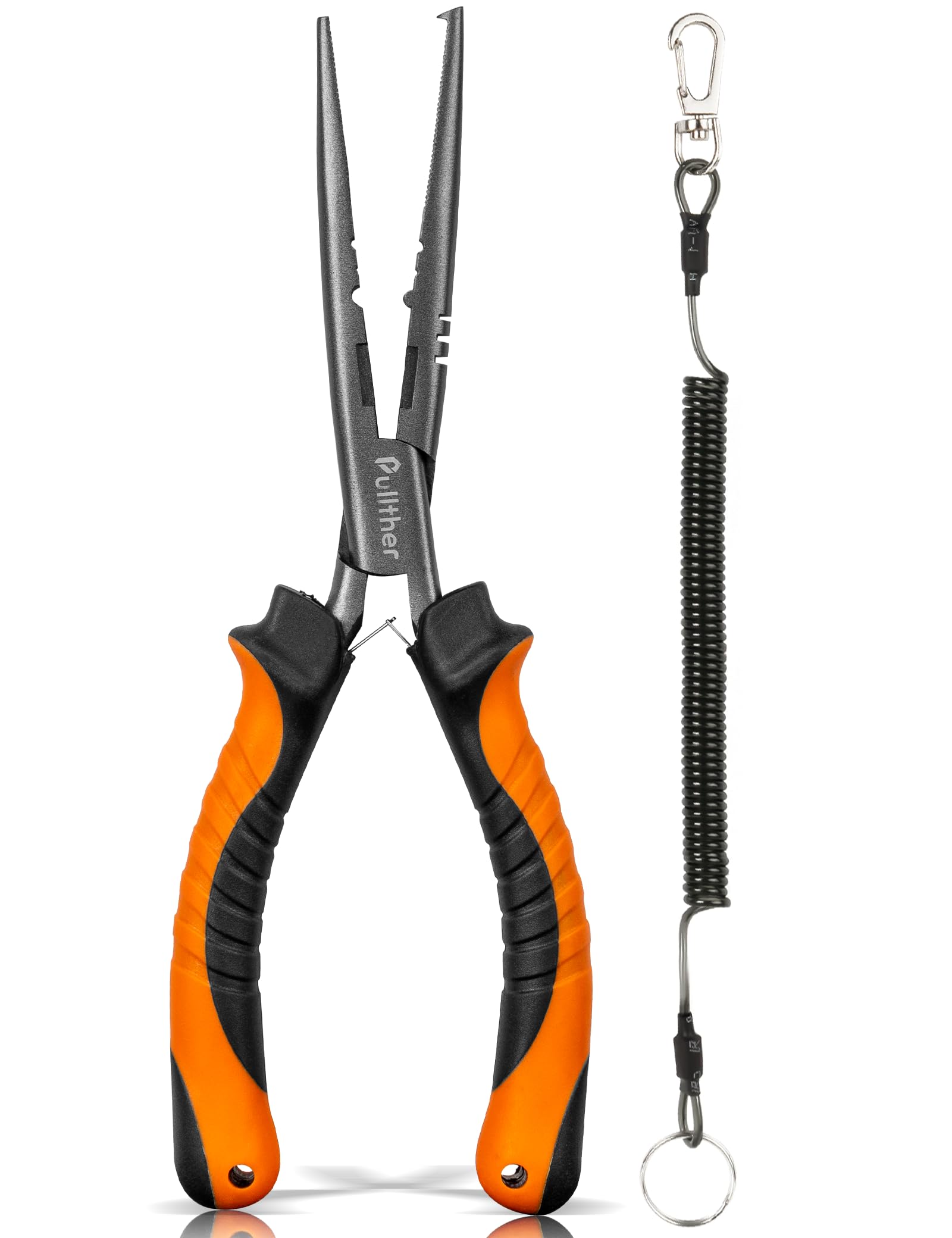 - Secure Carry & Instant Access (Sheath & Lanyard): Keep your essential tool protected and always within reach. The included custom molded belt sheath with clip shields your pliers from damage. Clip it to your belt or waistband for instant access when battling a fish. The coiled safety lanyard provides crucial peace of mind, preventing accidental loss overboard.