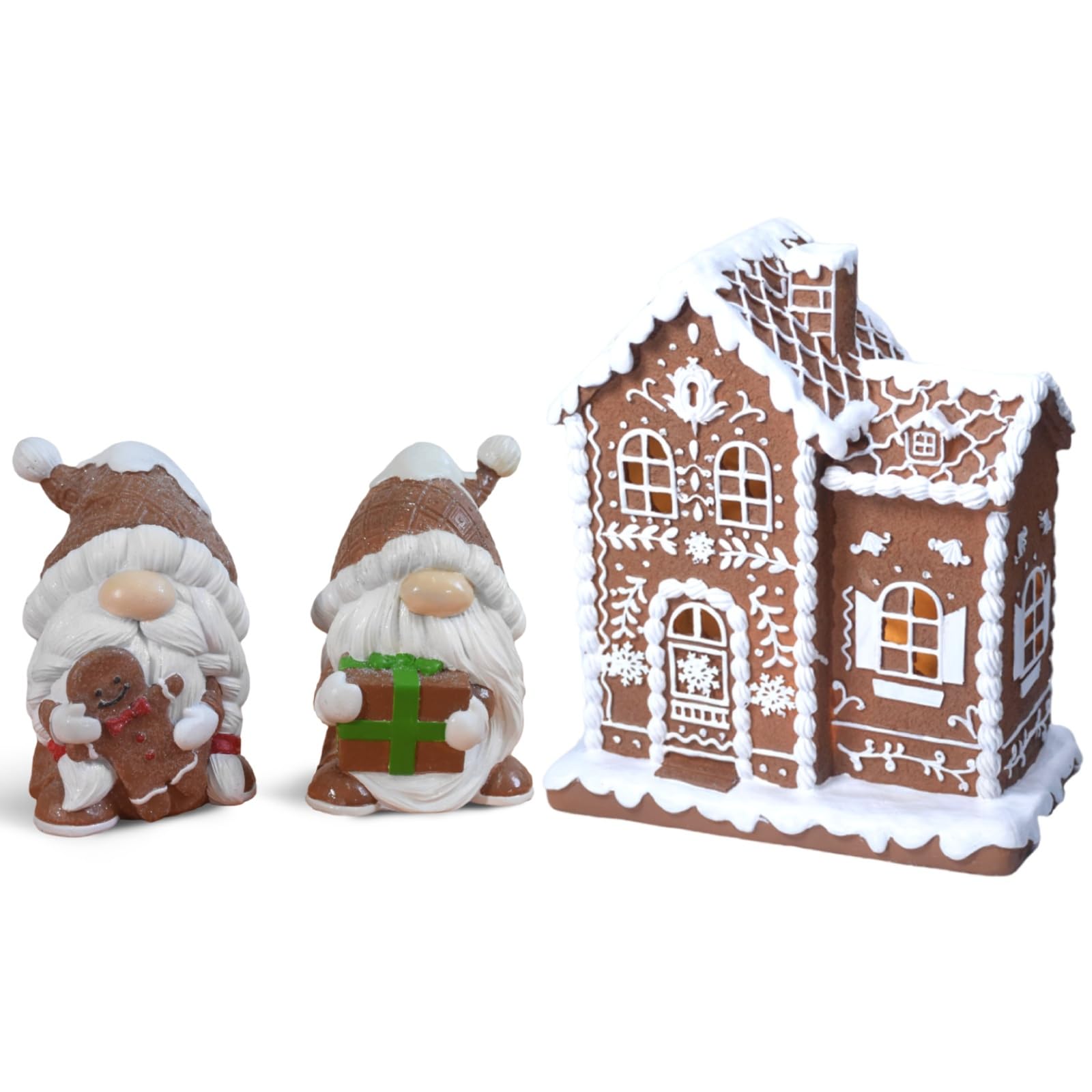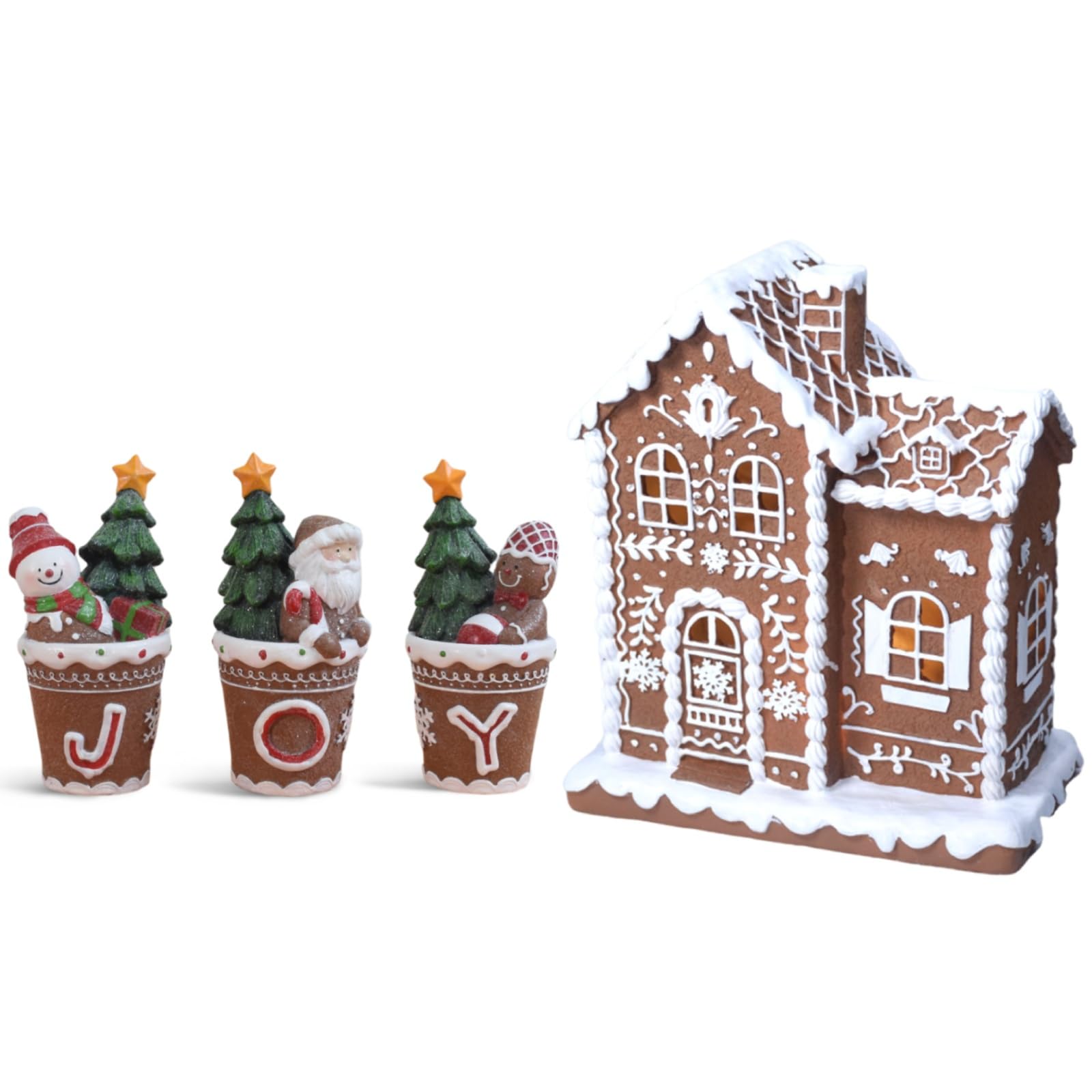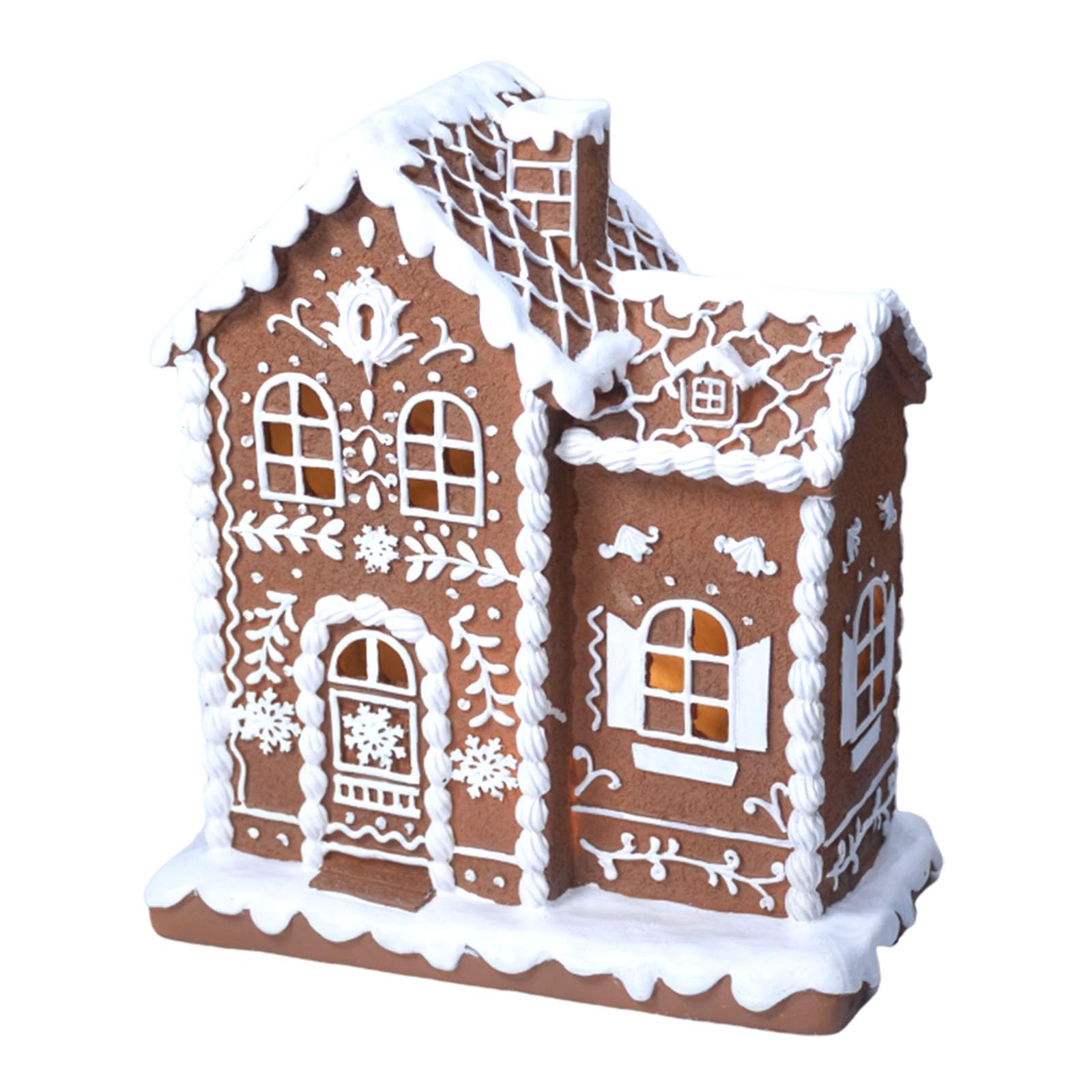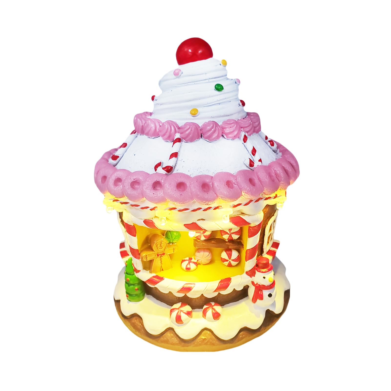 Gingerbread Christmas Decorations Indoor Resin Gingerbread House Decor with LED Lights 9 * 5 * 10.2 Inch Kitchen Tabletop Decor for Women