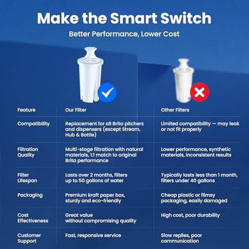 - 【𝐖ide 𝐂ompatibility – 𝐅its 𝐌ultiple 𝐌odels】Compatible with a wide range of Brita water pitchers and dispensers, including popular models like Brita Grand, Lake, Capri, Wave, Metro, Soho, Infinity, Marina, Monterey, Pacifica, Space Saver, and many others. It is also compatible with Krups F088, Melitta Pro Aqua, Nivona, Seltino VITE, UNIWATER 1049, AquaCrest AQK-05, Wessper WES043, and FilterLogic CFL-701B. The Mutital filter fits these models perfectly, ensuring secure installation and efficient performance.
