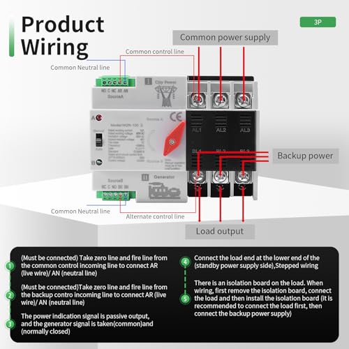 - Functions and Features: 100a 3p dual power auto transfer switch W2R is a PC-level infrequent switching switch, mainly used for automatic or manual conversion of two power supplies, and can test whether the common power supply or backup power supply is normal. When the common power supply A is abnormal, the backup power supply B is quickly switched and put into use within 0.05 seconds to ensure the continuity, reliability and safety of power supply. When the common power supply returns to normal, it automatically switches from the backup power supply to the common power supply. Both power supply A and power supply B can be connected to the mains/generator/photovoltaic, with four wiring