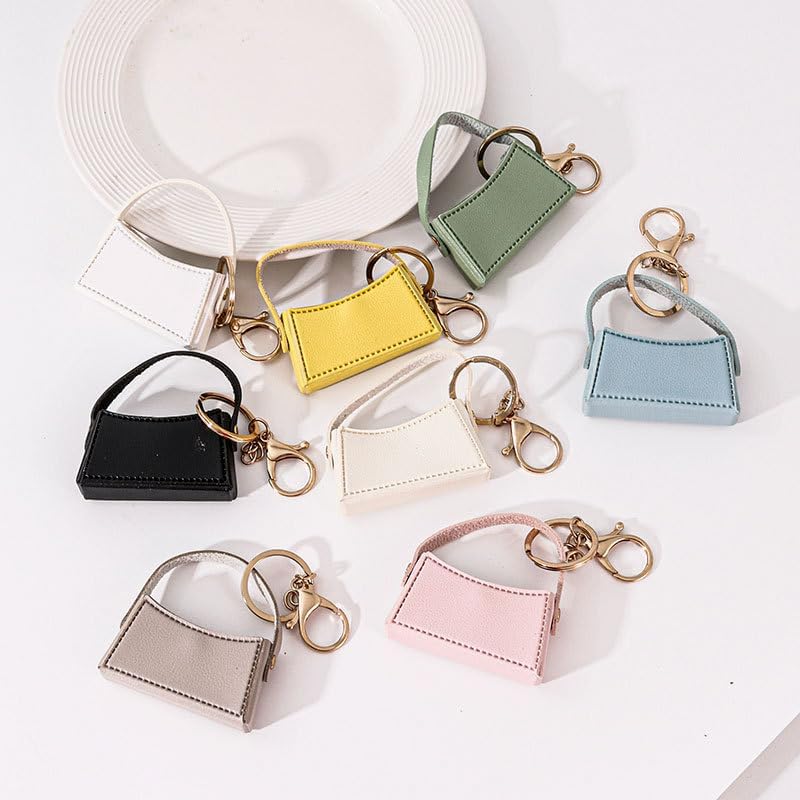 PU Leather Portable Key Chain Coin Holder Bag Case with Mini Mirror Creative Cute Keychain Small Pendant Organizer for Women's Bag, Purse, Lanyards (Style 5)