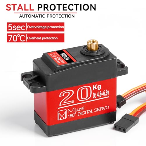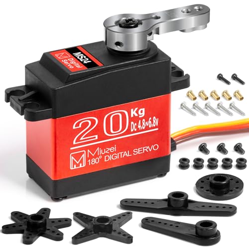 Miuzei 20KG RC Servo Motor High Torque Metal Gear Digital Servo Waterproof Steering for 1/8, 1/10 R/C Model DIY Car Robot, Control Angle 180° (1)