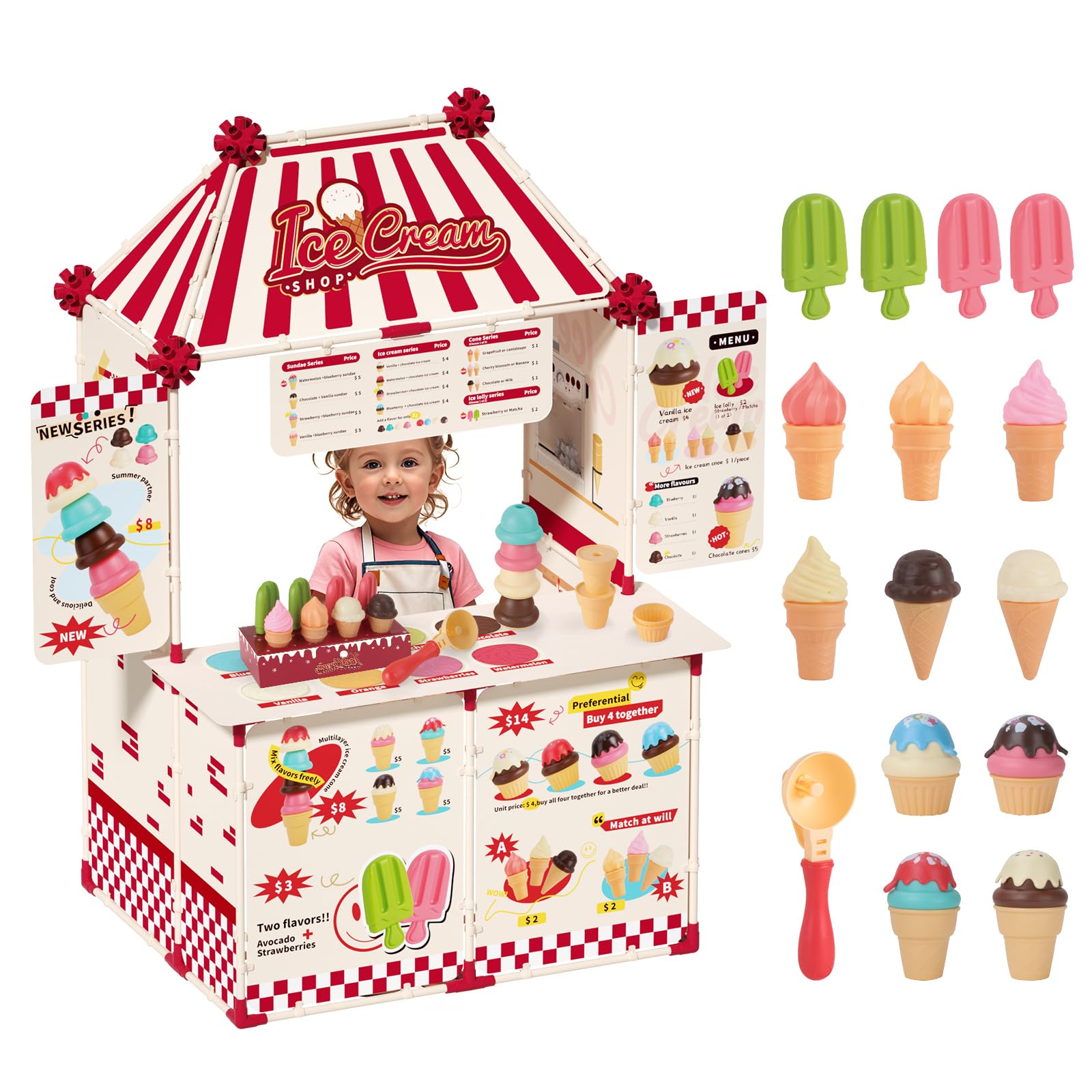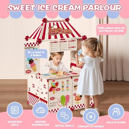 - 👏 HANDS-ON FUN:Build your own ice cream fort with help from a grown-up (takes about 1 hour), then open for business! Kids become creative shopkeepers: craft fun desserts, use the menu and play money for transactions, and welcome “customers” into their imaginative world.
