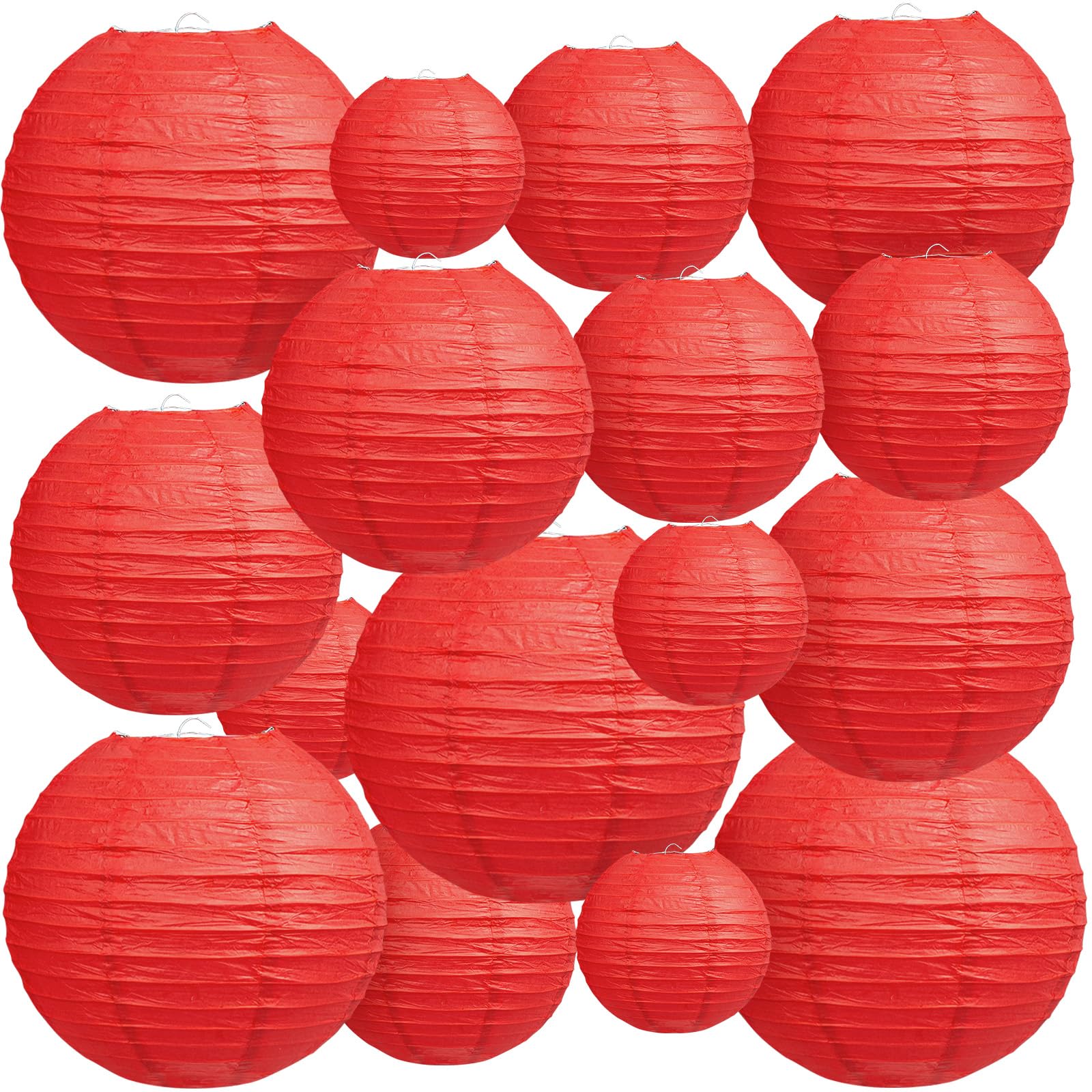 16 Pcs Red Paper Lantern Set, Assorted Sizes (6" 8" 10" 12") Hanging Chinese Japanese Lanterns for Chinese New Year, Lunar New Year 2026, Christmas, Wedding, Birthday Party Decorations