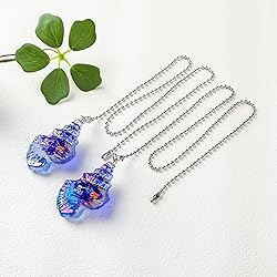 LONGSHENG - SINCE 2001 - 2 Pack Ceiling Fan Pull Chain, 20 inch Ceiling Pulls Extension Chains with 4 Connectors,Blue Glass Conch Ornament Pull Chains