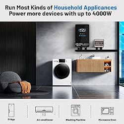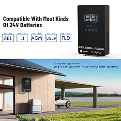 Unique Glass Cover Design: Tempered glass upper cover with big 6.25 inch LCD display and touchable buttons, cool look with high transparency, more clear to see real-time data of your inverter Powerful Inverter: 4000W rated and 8000W peak output. Please check the rated and peak power of your load, add up the watts used by all devices you think you'll run at the same time and see whether it is within the output power range of the inverter Stable and Efficient: Pure sine wave output, no interference, extends life of your devices, especially sensitive inductive appliances. Build-in 140A MPPT charge controller, max. PV 5600W 350VDC, max. conversion efficiency 98% Battery-free Running: This power inverter can work without battery in daytime with enough PV power, use PV DC current to run the loads. As well it works with most kinds of 24V batteries like AGM, Gel, Lead-acid, Lithium-ion and LiFePO4 Hybrid Solar Inverter: This power inverter can configure charging and output priority of solar panels, battery or utility, allowing for energy storage and direct use, provides you sustainable power for off grid life, power outage, emergency Easy Settings: With function buttons and a LCD display, indicating the operating status and input/output power information, allowing you to set parameters like battery charging current, priority of AC and solar energy Safe and Reliable: Built-in three cooling fans. Multiple protections for overload, overheat, over current, short circuit. One-key restoration to default settings. Smart battery charge design to optimize battery life