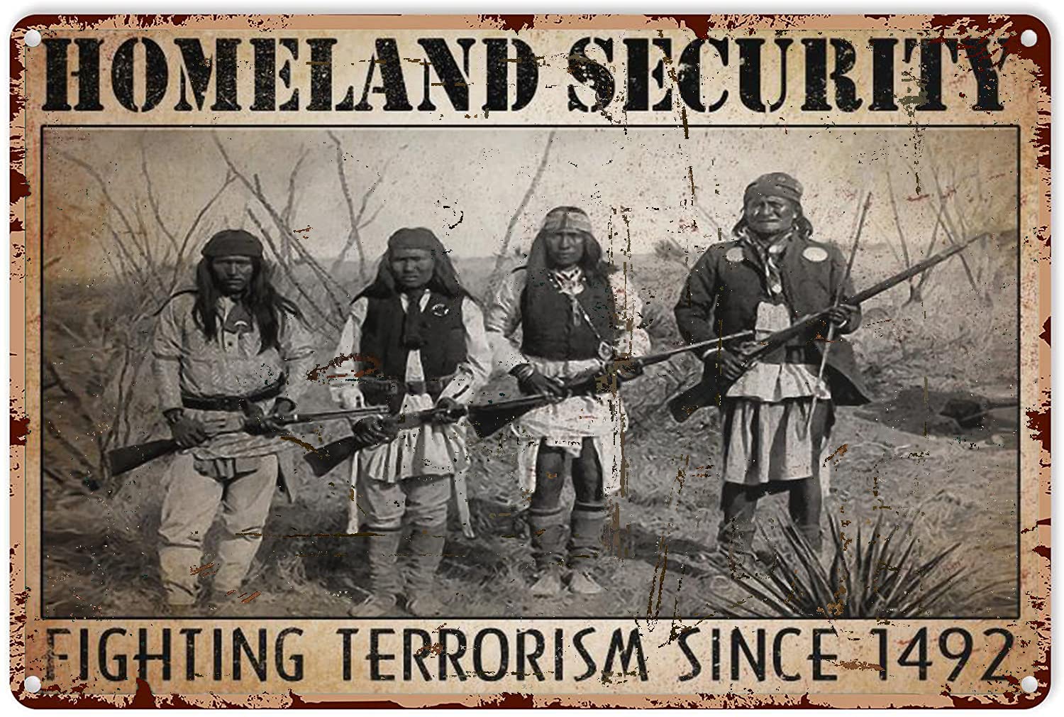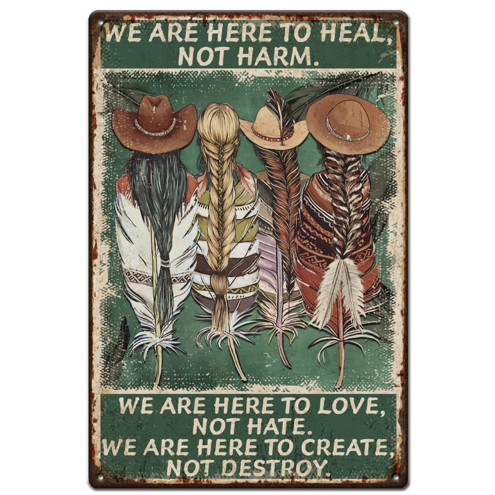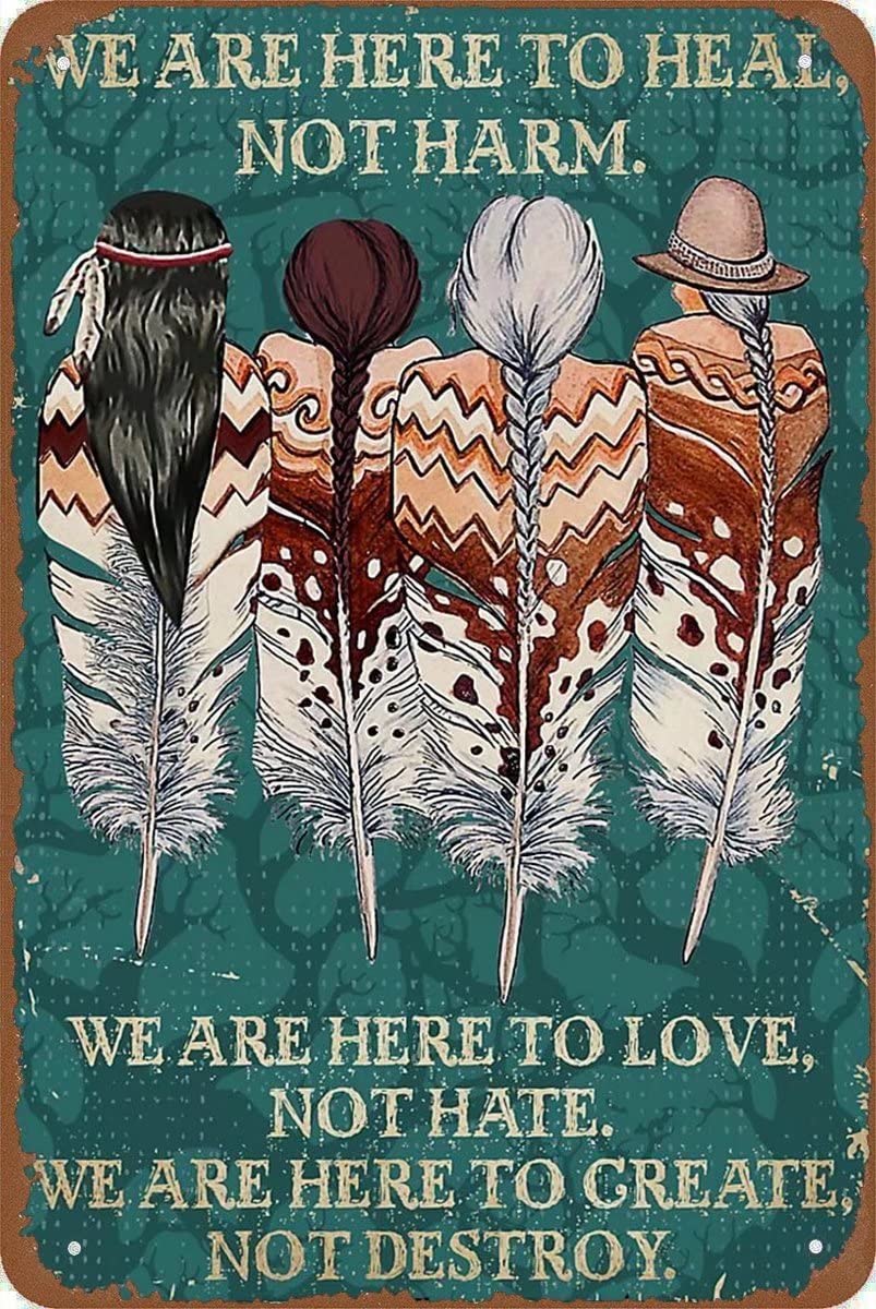 - VINTAGE DESIGN: Classic retro-style metal sign featuring Native American imagery with distressed edges and weathered finish for authentic vintage appeal