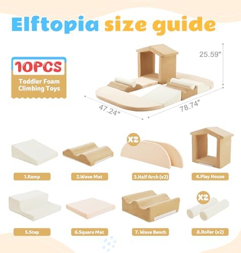 - 10 Pieces Climbing Toys:Complete with a charming house structure,diverse ramps,slides,stairs and interlocking cylinders—all designed as climbing toys to create endless climber structuresfor stimulating exploration