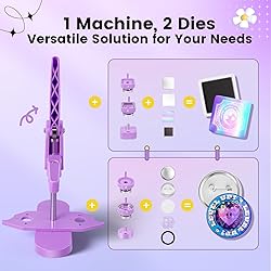 Square & Round Button Press Kit: Included: 1 button press machine + 50 sets round button making supplies + 50 set square magnet button making supplies – No need to buy extra parts Multi-Purpose: You can make 2.25'' round button pins, and 2''x2'' square fridge magnets, Ideal for custom promotional buttons, fundraiser pins, business logos, or personalized gifts Interchangeable Mold System: Features a magnetic baseplate for 5-second installation, enabling effortless mold swaps to create badges of different sizes Beginner-Friendly Design: Simple 3-step operation (assemble, insert button refills, press ). Easy for crafts for teens, school projects, or DIY party favors Professional Craft Machine: Press durable badges with crisp graphics - perfect for crafts, fundraisers, small businesses, or personalized gifts