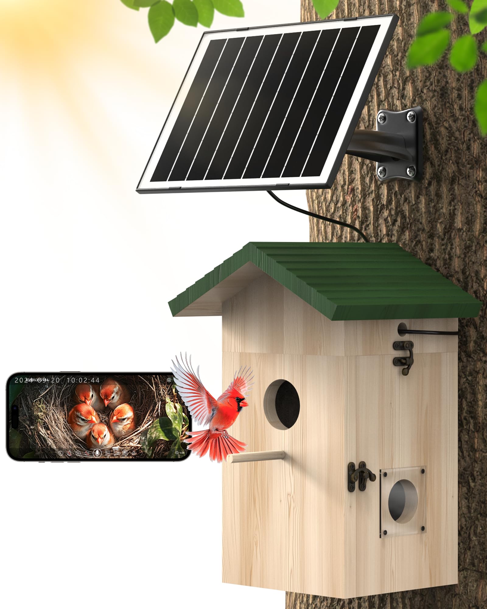 - 【Effortless Solar Power & Simple DIY Setup】: Enjoy true wireless freedom. Crafted from solid wood with all hardware included, the birdhouse is easily assembled. The integrated solar panel and 5000mAh battery provide continuous power for hassle-free, cordless monitoring.