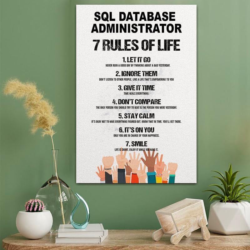 Customize Sql Database Administrator Poster Wall Art - 7 Rules of Life Poster Print, Motivational Wall Art, Sql Database Administrator Canvas Painting for Office, Gym 27AZ2848