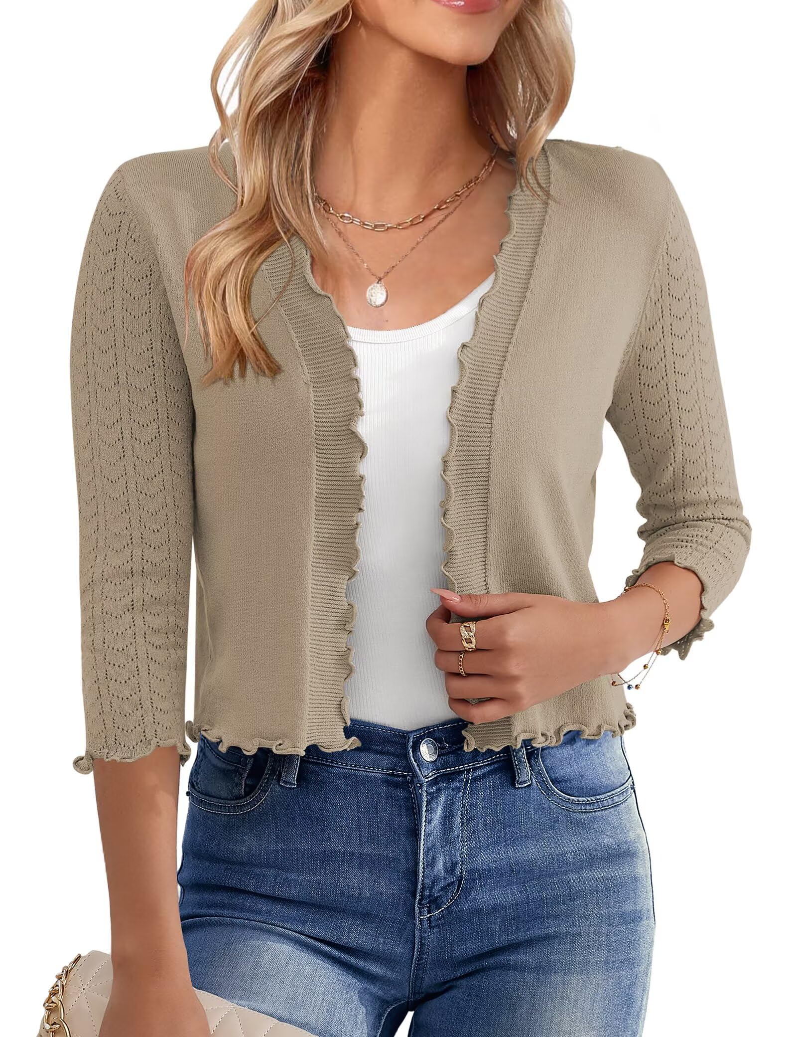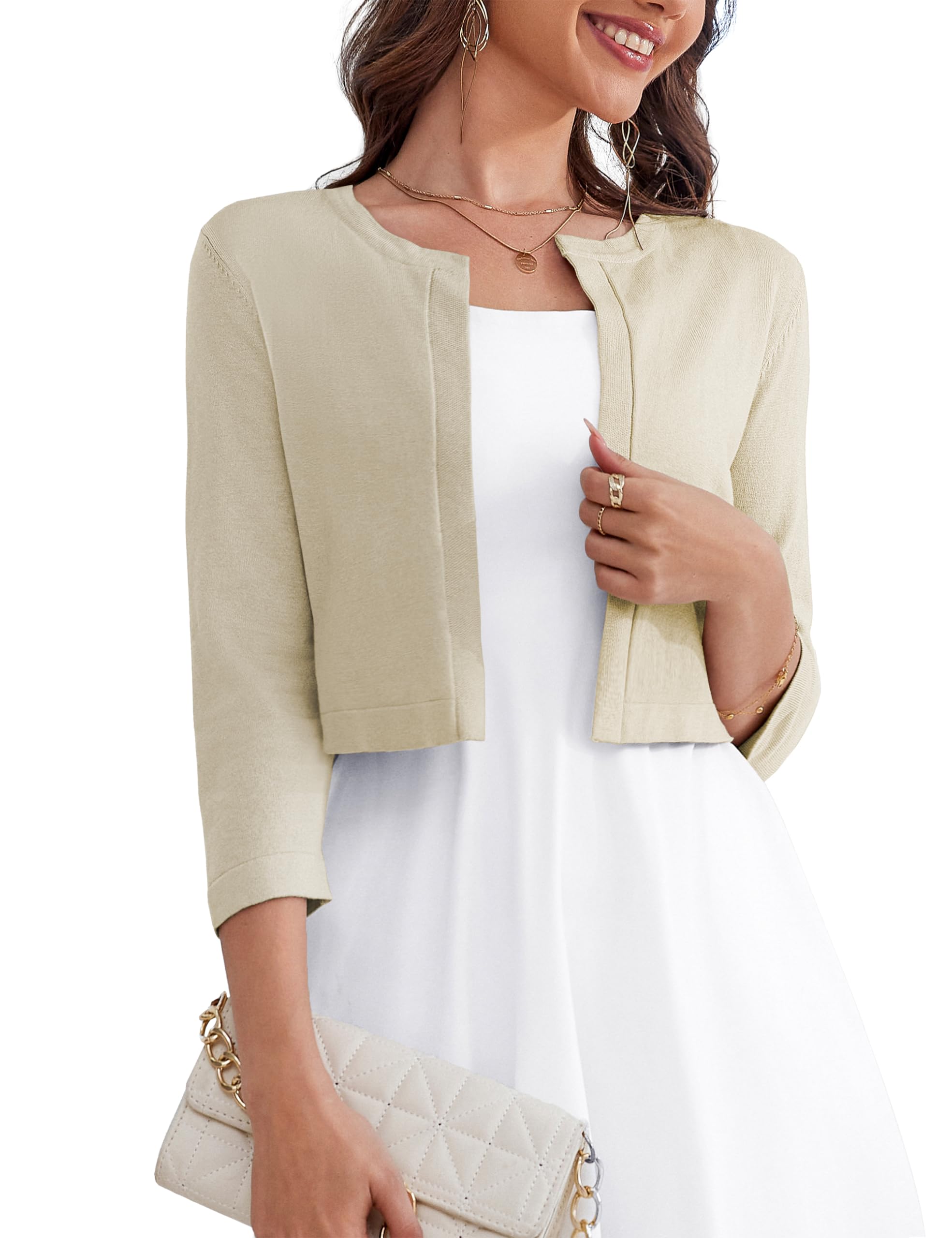 Women's Belero Shrugs Long Sleeve Knit Open Front Cropped Cardigan Sweaters for Dresses Black, Small