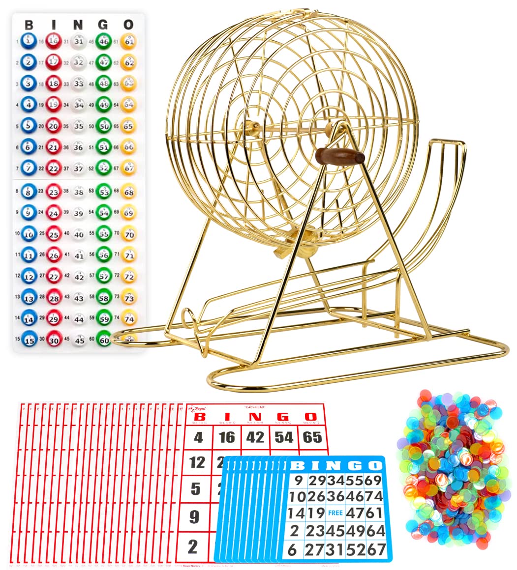 12.6" Tall Bingo Game Sets with Steel Cage, Professional Bingo Game for Adults/Kids Includes Colorful Chips, 30 Cards and 75 Balls, Great for Fun Family, Large Groups, Parties