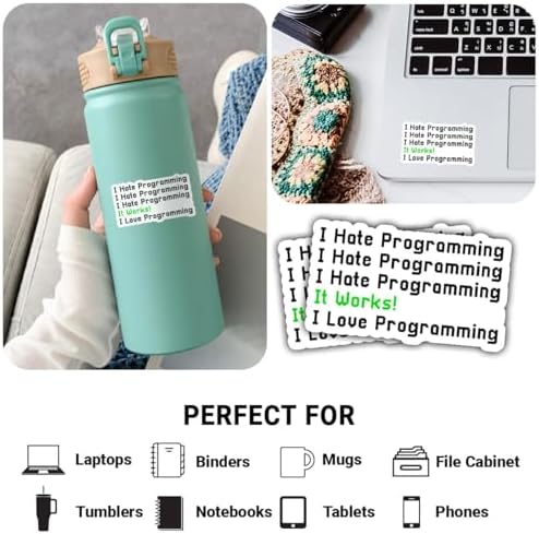 - 3 Pcs I Hate Programming It Works I Love Programming Stickers – Funny Tech Quote Decals for Programmers, Developers – Gifts for Software Engineers – for Laptop, Water Bottle, Tumbler – 3"x3". Search us: i hate programming it works i love programming; i hate programming it works i love programming sticker; i hate programming it works i love programming stickers; i hate programming it works i love programming decal; funny programming quote sticker; sticker for software developers; humorous quote for programmers; sticker for coders; funny sticker for developers; gift for programmers; sticker for developers who love coding; sticker for tech enthusiasts