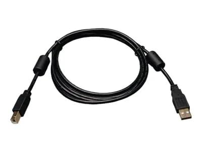 Tripp Lite Eaton Tripp Lite Series USB 2.0 A to B Printer Cable delivers fast data transfer for printers scanners and peripherals This 3 ft cable features braided jacket gold plated connectors and double shielding with ferrite chokes to reduce electromagnetic interference and maintain signal integrity Designed for USB USB 2.0 compliant standards and RoHS safety the durable black cable ensures dependable performance in home office corporate and industrial environments Plug and play USB Type A to Type B male to male configuration provides seamless connectivity with PC Mac workstation and server systems Ideal for connecting USB printers scanners label makers cash registers and medical equipment Cloud Care Pre Configured Bundle Eligible for straightforward deployment in managed IT solutions Upgrade your setup with a premium noise reducing data cable offering long lasting durability universal compatibility and professional grade quality
