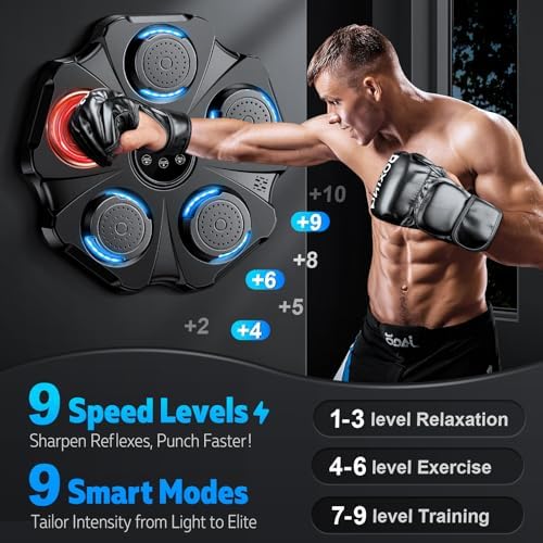 - 💪 9 Modes & 9 Speeds for All Skill Levels:Take your training to the next level with our versatile music punching machine. Featuring 9 customizable modes and 9 adjustable speeds, it is designed to challenge both beginners and experienced boxers. Improve your reaction time, hand-eye coordination, and rhythm while burning calories. It’s the perfect workout companion for weight loss, fitness training, stress relief, or just having active fun.